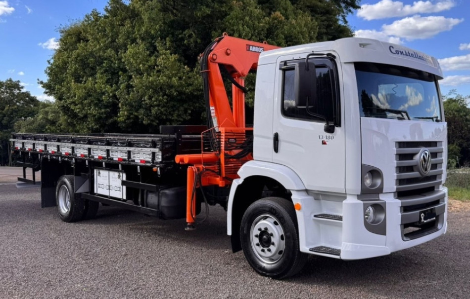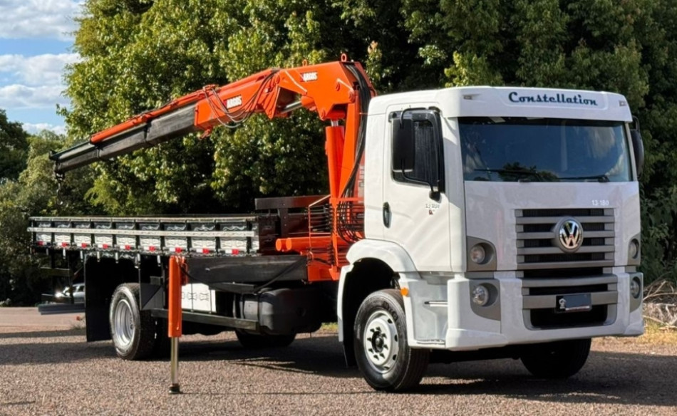 Aceito Troca, Garantia de 3 meses, Sem Gravame, Som original | VOLKS 13.180 CONSTELLATION MUNCK 2009 REDUZIDO Direção Hidráulica Freio a ar Estacionário Motor MWM Turbo e Intercooler Freio Motor Caixa Eaton 100% Revisado Apenas 189.000km Carroceria com assoalho de ferro 7,20M MUNCK ARGOS 20T 3 Lanças hidráulicas 2 lanças Manuais Patolas Extensivas Hidráulicas Sapata traseira Capacidade de 5.250Kg 14 Metros de lança vertical 17 Metros de lança horizontal | [2486298]