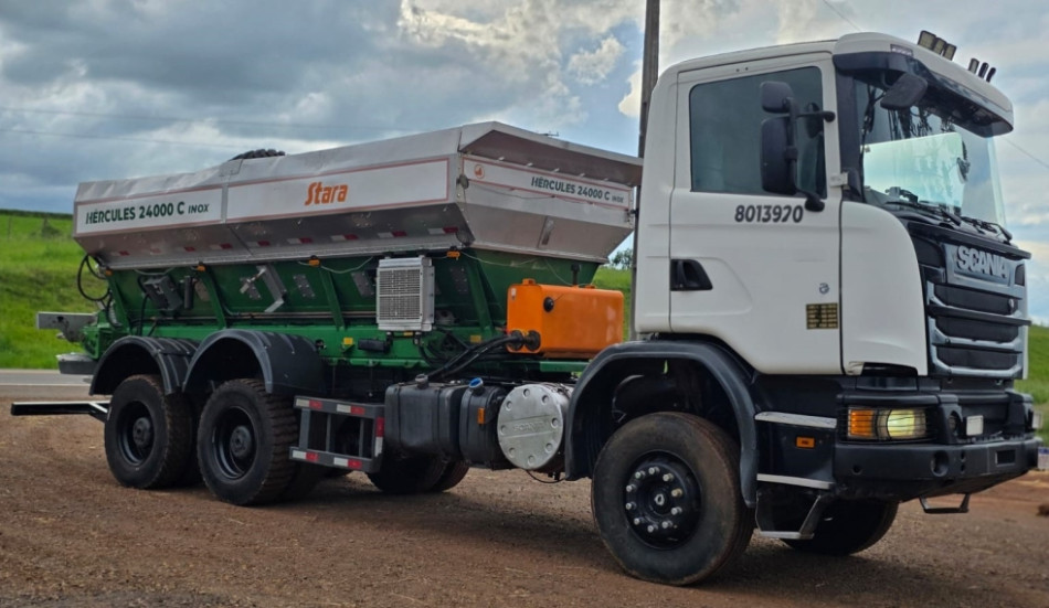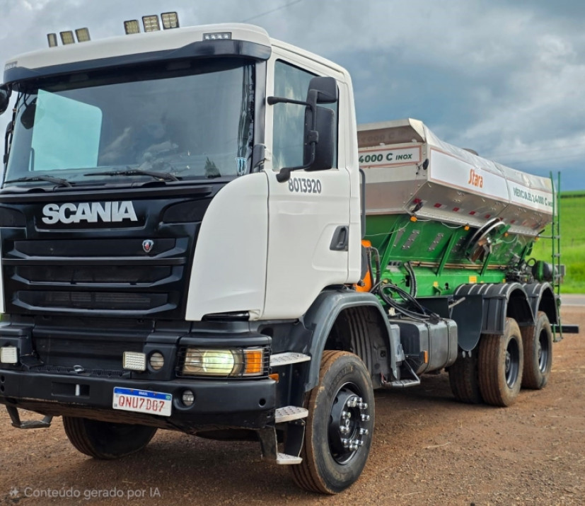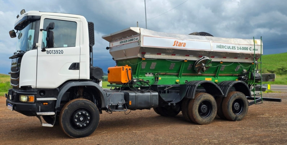 Sem Gravame, Som original | Scania G 440 6x4 Off-road. Equipado com o Distribuidor Hercúles 24000 C inox. GPS e TAXA VARIÁVEL TOPPER 5500. ANO 2022. Comporta Dupla. * Motor 6 cilindros de 13 litros, potência máxima de 440 cv. * Câmbio automático optcruise 12 marchas * Diferencial: de Duplo Bogie com redução nos cubos. Projetado para as condições operacionais mais difíceis oferecendo força e resistência. Bloqueio do diferencial ( Longitudinal e transversal). * Freio Retarder Este veículo está sendo vendido c nota fiscal e garantia por três meses de motor, caixa e diferencial. | [2486781]