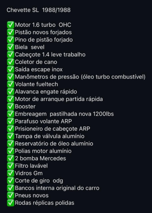 Observações do vendedor sobre Chevrolet Chevette 1988: