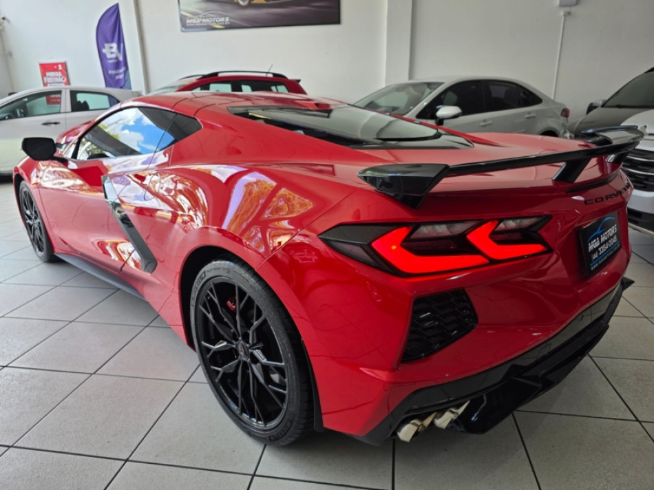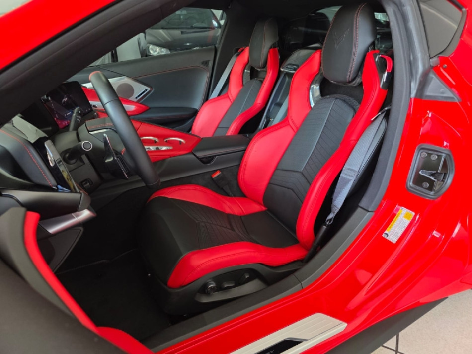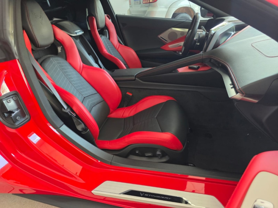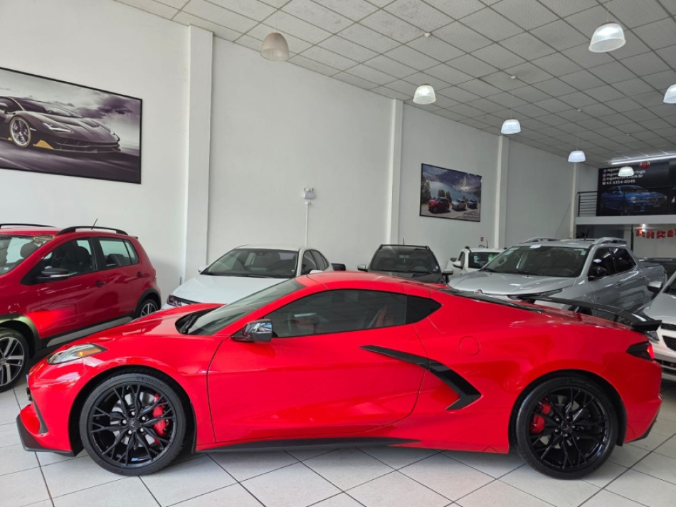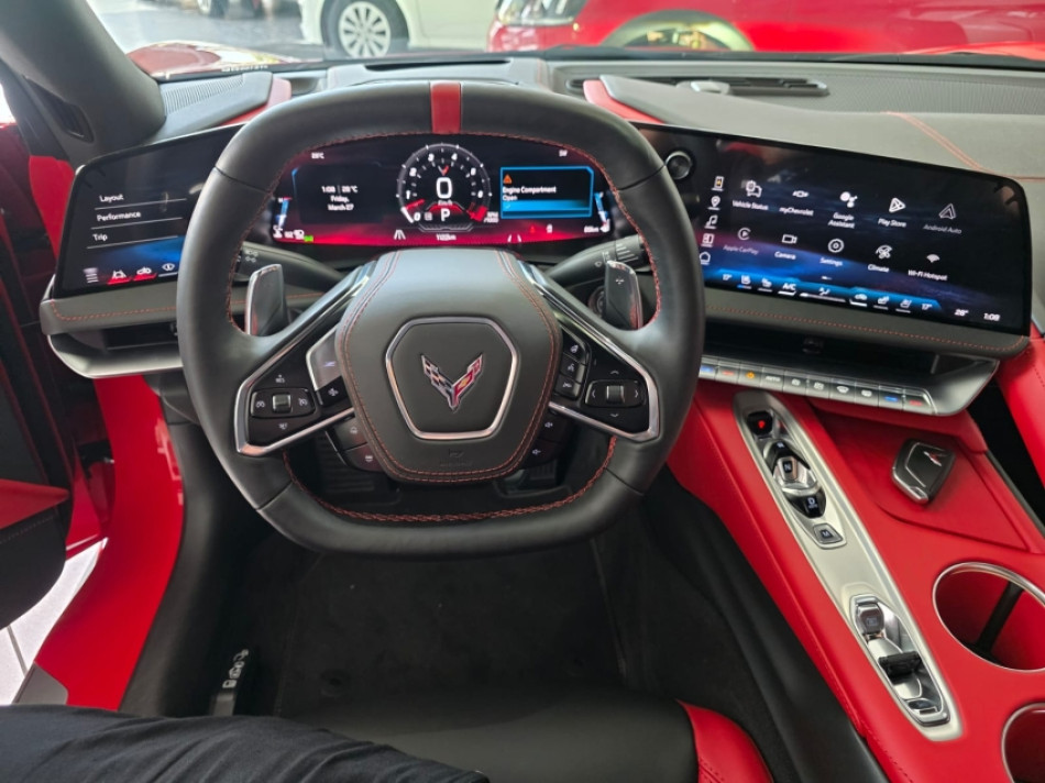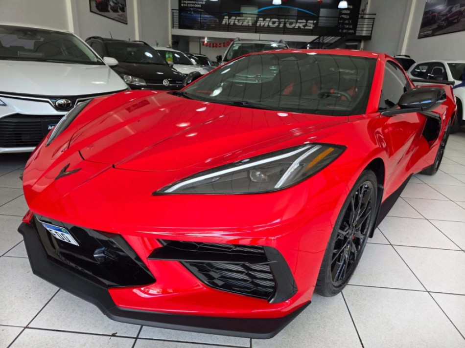 CORVETTE LT2 6.2 V8 502CV - Câmbio Automático de 8 Velocidades - Torch Red (vermelho) - Pacote Z51 Performance - Freios Brembo - Diferencial Eletrônico - Escapamento Esportivo - Aerofólio - Pinças Vermelha - Interna Bicolor Couro Vermelho Adrenalina/Preto Jet - Bancos Concha em Carbono com Ajustes Elétricos - Aquecimento e Ventilação - Volante Multifuncional - Sistema de Som Bose Performance - Painel Digital - Modos de Condução (Weather, Tour, Sport, Track, Z mode) - Head-Up Display Colorido - Multimídia com Google Assistence - GPS - Bluetooth/USB - Espelhamento Tela Celular Android Auto e Apple Carplay - Roteador Wi-Fi - Sensores de Estacionamento Dianteiro e Traseiro com Câmeras em HD Frontal e Traseira - Câmera Frontal com Telemetria para Gravar Volta em Circuito - Lift System - Rodas de Alumínio Forjado 19/20 - Barras de Fibra de Carbono - Motor Iluminado.